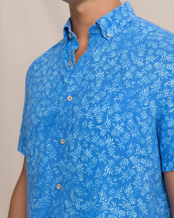 Southern Tide Short Sleeve Pineapple Parade Sport Shirt - Blue Stream